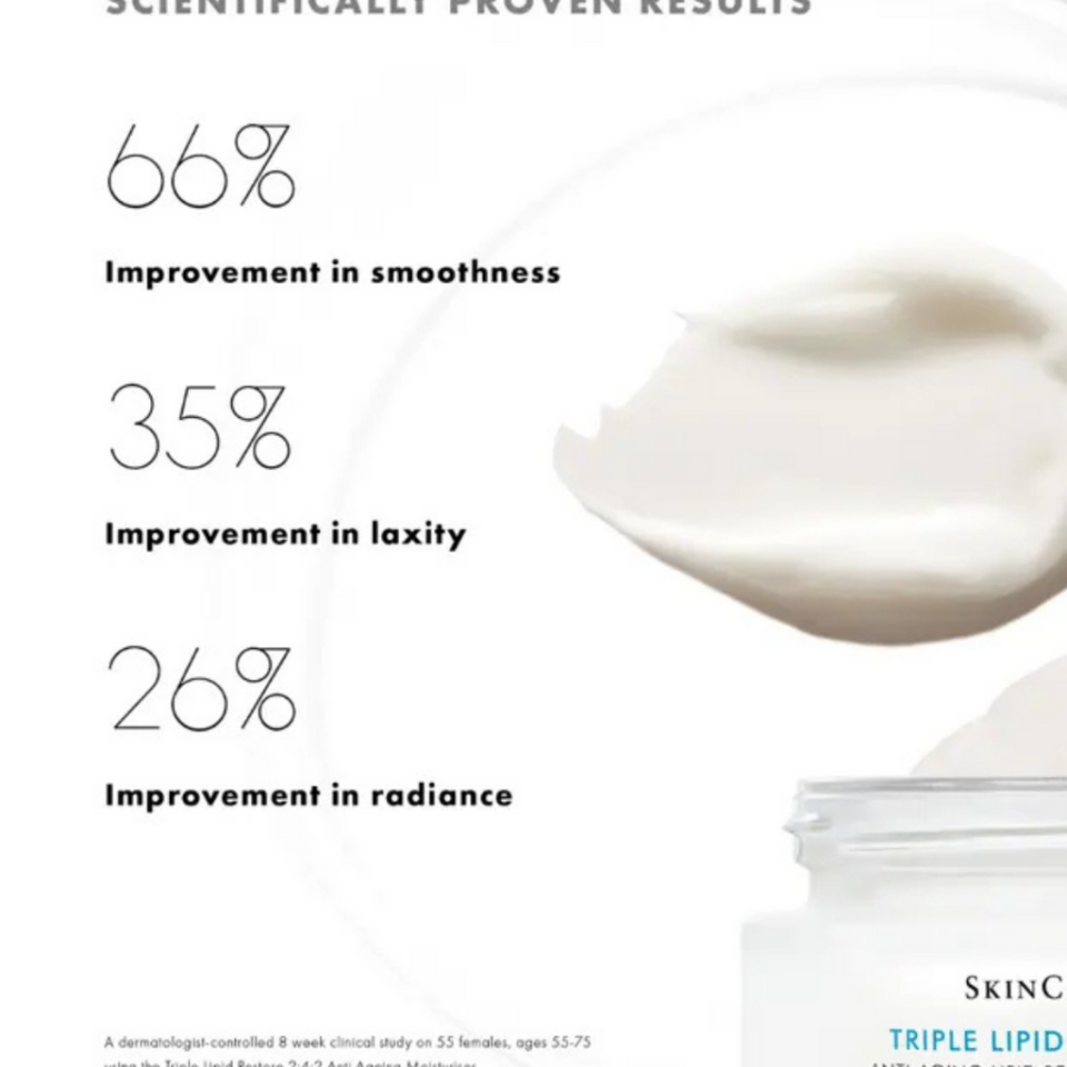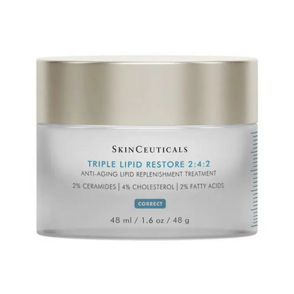 SkinCeuticals Triple Lipid Restore 2:4:2 is a rich, anti-aging moisturiser designed to replenish essential skin lipids—ceramides, cholesterol, and fatty acids—to restore barrier function, improve firmness, and enhance radiance. Ideal for all skin types, especially those with signs of aging or barrier damage.